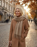 Projetado pela natureza para suportar temperaturas extremas, o legítimo cashmere atua como um regulador térmico perfeito. Ele retém o calor corporal com máxima eficiência, protegendo contra o frio intenso sem adicionar qualquer volume ou peso indesejado à sua silhueta.
