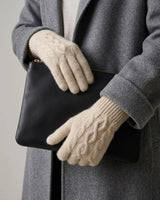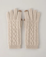 Luvas Cable-Touch Feminina Bege 100% Cashmere