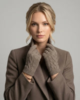 Luvas Cable-Touch Feminina Mocha 100% Cashmere