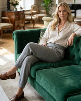 A espessura de cada fio de nosso cashmere é uma fração minúscula da lã tradicional. Esse rigor na seleção proporciona um toque incrivelmente aveludado, criando uma sensação de segunda pele inigualável e um aspecto visual rico e sofisticado.