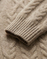 A espessura de cada fio de nosso cashmere é uma fração minúscula da lã tradicional. Esse rigor na seleção proporciona um toque incrivelmente aveludado, criando uma sensação de segunda pele inigualável e um aspecto visual rico e sofisticado.