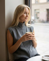 Colete Encosta Ribbed-Zip Feminino Cinza 100% Cashmere
