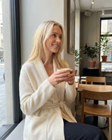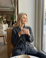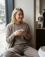 A espessura de cada fio de nosso cashmere é uma fração minúscula da lã tradicional. Esse rigor na seleção proporciona um toque incrivelmente aveludado, criando uma sensação de segunda pele inigualável e um aspecto visual rico e sofisticado.