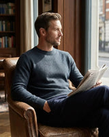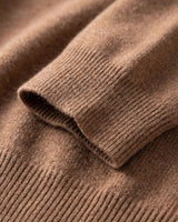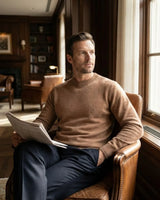 A espessura de cada fio de nosso cashmere é uma fração minúscula da lã tradicional. Esse rigor na seleção proporciona um toque incrivelmente aveludado, criando uma sensação de segunda pele inigualável e um aspecto visual rico e sofisticado.