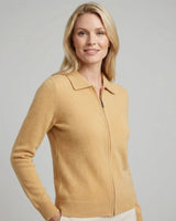 Suéter Polo-Zip Feminino Laranja 100% Cashmere
