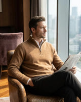 Pulôver Platô Half-Zip Masculino Marrom 100% Cashmere
