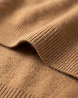 A espessura de cada fio de nosso cashmere é uma fração minúscula da lã tradicional. Esse rigor na seleção proporciona um toque incrivelmente aveludado, criando uma sensação de segunda pele inigualável e um aspecto visual rico e sofisticado.