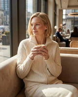Projetado pela natureza para suportar temperaturas extremas, o legítimo cashmere atua como um regulador térmico perfeito. Ele retém o calor corporal com máxima eficiência, protegendo contra o frio intenso sem adicionar qualquer volume ou peso indesejado à sua silhueta.