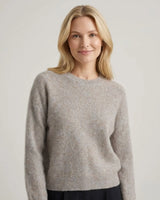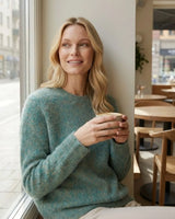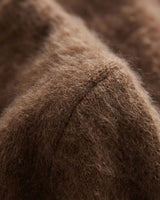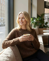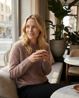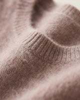 A espessura de cada fio de nosso cashmere é uma fração minúscula da lã tradicional. Esse rigor na seleção proporciona um toque incrivelmente aveludado, criando uma sensação de segunda pele inigualável e um aspecto visual rico e sofisticado.