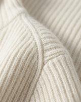 A espessura de cada fio de nosso cashmere é uma fração minúscula da lã tradicional. Esse rigor na seleção proporciona um toque incrivelmente aveludado, criando uma sensação de segunda pele inigualável e um aspecto visual rico e sofisticado.