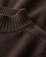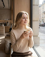 A espessura de cada fio de nosso cashmere é uma fração minúscula da lã tradicional. Esse rigor na seleção proporciona um toque incrivelmente aveludado, criando uma sensação de segunda pele inigualável e um aspecto visual rico e sofisticado.