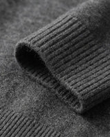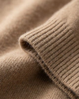 A espessura de cada fio de nosso cashmere é uma fração minúscula da lã tradicional. Esse rigor na seleção proporciona um toque incrivelmente aveludado, criando uma sensação de segunda pele inigualável e um aspecto visual rico e sofisticado.